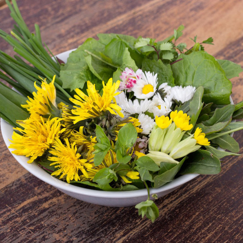 Zu den Klassikern gehören Löwenzahn, Brennnessel, Giersch und Vogelmiere. Besonders würzig sind Knoblauchrauke und Schaumkraut. Wer es dekorativ mag, findet in Gänseblümchen und Roter Taubnessel auch essbare Blüten für den Teller.