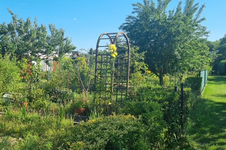 Der Eingang der Kleingartenanlage ist leicht zu übersehen. Mitten zwischen Einfamilienhäusern liegen hier leicht versteckt die 32Parzellen. Früher waren hier einst Anbauflächen des Potsdamer Obstbauern Neumann. Nach der Gründung des Kleingartenvereins im November 1975 verwandelten die Mitglieder die Fläche in ihr ureigenes Gartenidyll. Diesen Sommer wurde groß das 50. Jubiläum gefeiert, mit einem lachenden und einem weinenden Auge. Denn die kleine Gartensparte bangt seit einigen Jahren um ihren Fortbestand.